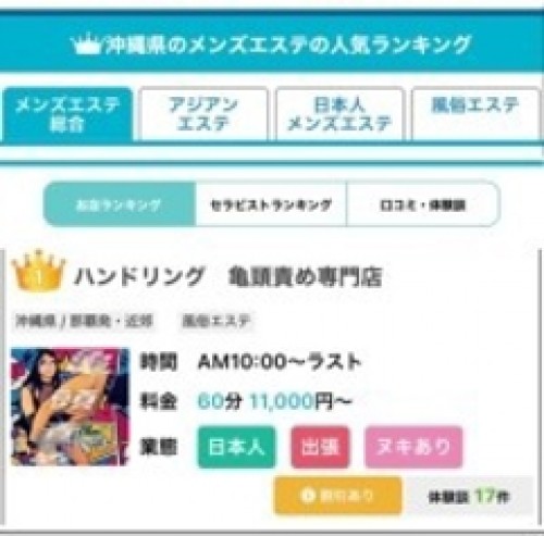 「ハンドリング那覇 亀頭責め専門店」(沖縄/デリヘル)